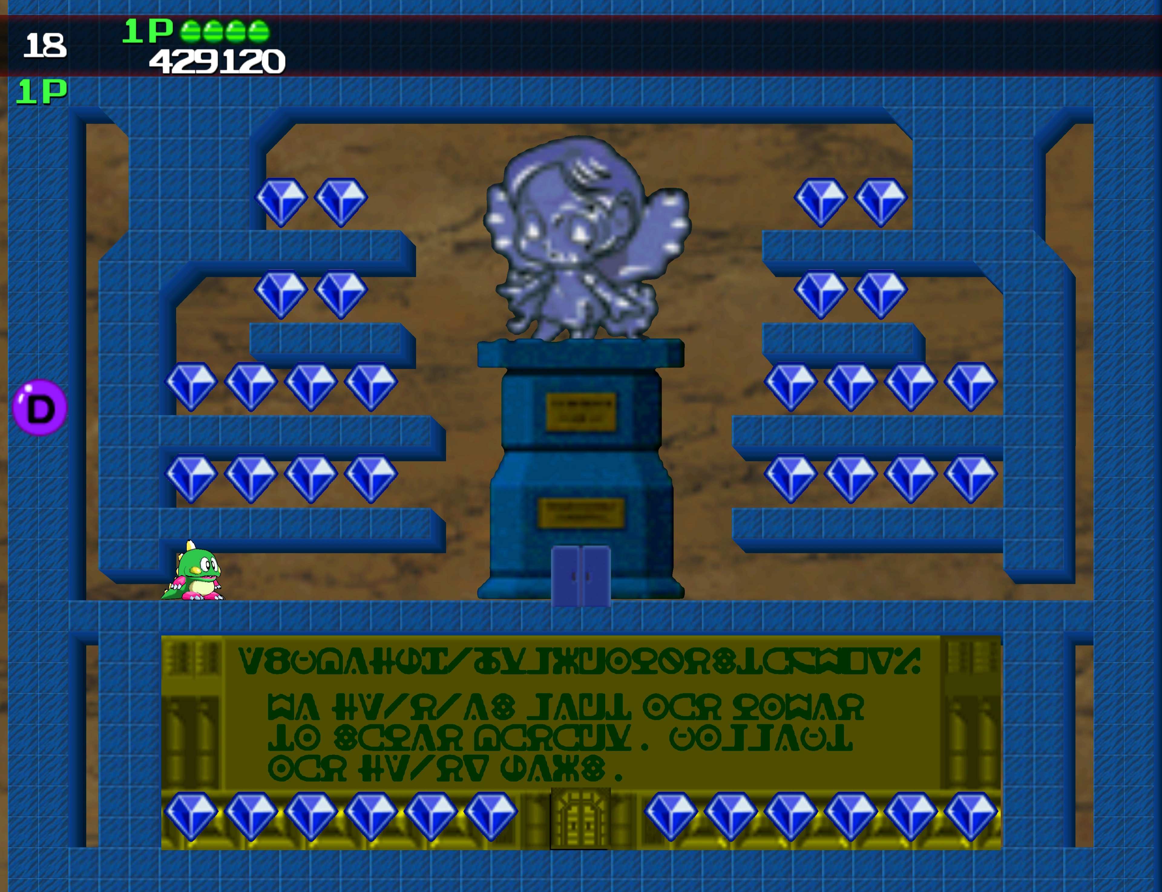A fairy statue in one of the Secret Rooms in Arrange mode of Bubble Bobble Plus!.