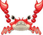 Gasharn appears as a gigantic bright red crab, though this is implied to be due to anger, and may not be his natural body color. He possesses six legs, as well as two claws, which are attached to his body via a chain of red bubbles.