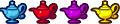 Four types of Lamps appear in the series, each with their own effect; the Blue Lamp (ブルーランプ Burū Ranpu?) typically provides the player with the effects of the Crystal, Amethyst, and Ruby Rings, the Yellow Lamp (イエローランプ Ierō Ranpu?) typically provides the player with the effects of the Pink, Blue, and Yellow candies, and the Red Lamp (レッドランプ Reddo Ranpu?) typically provides the player with the effects of all three Rings and Candies at one. The outlier among the four is the Purple Lamp (パープルランプ Pāpuru Ranpu?), which instead acts as special item that creates an explosion of sacred fire, defeating all enemies in the round similar to the effects of the Book of Death or Star Tiara.